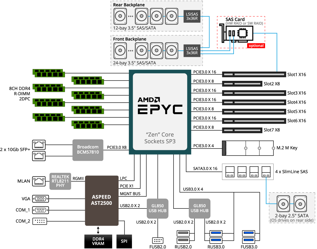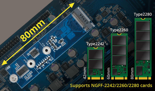 Платформы GIGABYTE AMD EPYC™ поддерживают ‘M.2’ накопители с свервысокой скоростью, которые, к тому же, не занимают слоты для дисков. Поддерживаются скорости до 32 Gb/s, что позволяет M.2 опережать по производительности традиционные mSATA устройства.