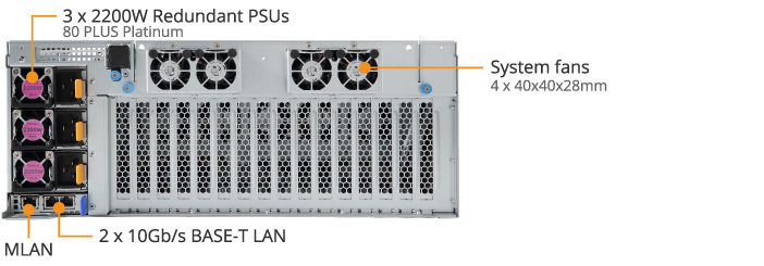 Дублированные блоки питания уровня 80 Plus ‘Titanium’ или ‘Platinum’ обеспечивают высокоэффективное питание для серверов GIGABYTE Xeon Scalable независимо от нагрузки, обеспечивая высокие показатели OPEX.
